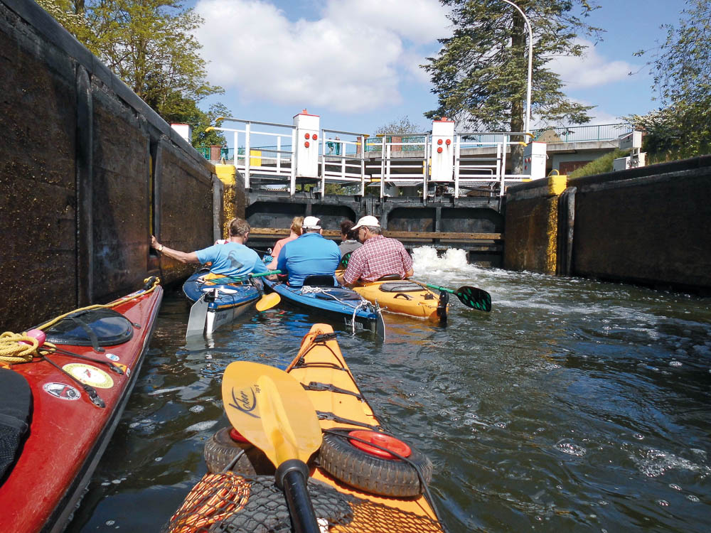 Die weitere Fahrt ging dann über den wunderschönen Rätzsee und die Drosedower Bek in den Gobenowsee. Die Drosedower Bek ist verwunschen und viele Vögel sangen im Schilf. Nachdem das Zelt aufgebaut und der mitgebrachte Eintopf verzehrt war wurde sich am Lagerfeuer versammelt und gesungen und erzählt. Bei einer kleinen spontanen Nachtfahrt zurück in die Drosedower Bek versuchten wir noch mal ein paar Biber zu sehen (Biberschleichfahrt), aber leider ließ sich keiner blicken. Nachdem die Abfahrtszeit am nächsten Morgen geklärt war, begaben sich alle zur Ruhe. Eine Familie beschloss, die Schlussrunde nicht mehr mitzumachen und fuhr mit dem Taxi zurück nach Wesenberg, der Rest startete zur letzten Etappe, wo wir über den Plätlinsee in die Schwaanhavel einfuhren, dem Höhepunkt der Reise. Es war gut, dass wir beschlossen, dieses schöne Stück Natur ans Ende der Fahrt zu legen, weil es nicht ganz so voll mehr war und man die Fahrt genießen konnte. Tief hängende Äste, enge Kurven und Stille belohnten uns. Am Ende der Schwaanhavel war dann nur noch mal eine Schleuse zu passieren, bevor wir wieder auf dem Wesenberger See ankamen und den Campingplatz, wo unsere Autos warteten , ansteuerten. Nachdem gepackt war, fuhren alle wieder nach Hause. Auch diese Tour war sehr schön und das Wetter spielte auch mit.
