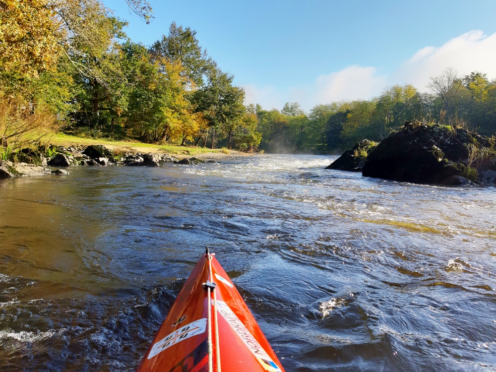 Zur Abwechslung standen jetzt noch ein paar Wildwasser-Flüsse in Galizien auf der to-paddel-liste. Die Auswahl ist riesig und Wasser hatten alle Flüsse trotz des schönen Wetters mehr als genug. Ich entschied mich für den Rio Ulla, den Rio Tambre und den Grenzfluß zu Portugal, den Rio Miño. Mal waren es ruhige Strecken aber meistens sehr abgelegene Wald- und Felsschluchten mit Wildwasser 2-4. Dank einer tollen App (jaha, auch ich nutze mittlerweile die Technik) hatte ich sehr zuverlässige Beschreibungen, denn ein Verlassen der Schluchtstrecken wäre durch die Steilheit des Ufers und dem dichten Dornengestrüpp bestimmt spannend geworden. Einzig das Nachholen des Autos mit dem Fahrrad war am Ende des Tages immer wieder eine sportliche Herausforderung, denn „Daumen raus“ und Trampen ist in Spanien eher unüblich.