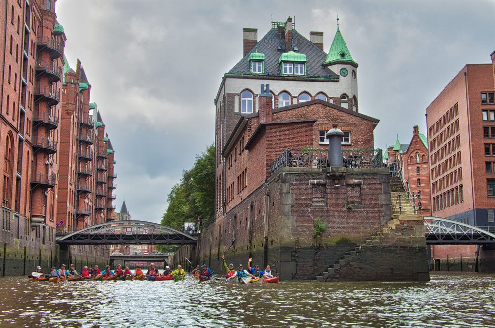 Die Speicherstadt allein ist schon sehenswert und als Ziel ausgiebig. Für eine Masse von Paddlern war dieser schöne Septembertag deswegen schon ein tolles Erlebnis. Aber der Weg dorthin - von Barmbek aus über die Alster - bot auch eine Fülle an Eindrücken. Fazit: Ein kurzweiliger Ausflug!